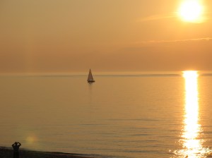 Shannon and I spent two gorgeous sunny days in Inverness this week – the area, formerly known as Broad Cove,  is apparently the beach glass capital of the world!  The woman working at the desk told me there was an article in the Globe and Mail  five years ago about all the beach glass and since then they’ve had a steady stream of jewelery makers, particularly from New York and the eastern States.  We, of course, lugged home a few pounds with great plans for filling glass containers, making jewelery, etc.  We’ll see…but it was so much fun treasure hunting while walking the beach!  I’m sure it must be the nicest beach in Nova Scotia.  A river feeds into the ocean just below MacLeod’s Beach Village cottages, and it’s a great place for kids to enjoy some warmish, fresh water swimming/ playing (when they’re not hunting for beach glass).  Interestingly,although some of the glass is old (she showed me a few pieces that an archaeologist-type told her would have been ballast hundreds of years ago – they looked like stones to me), there was once a dump in that area so a lot of the glass no doubt came from there (pre-recycling).