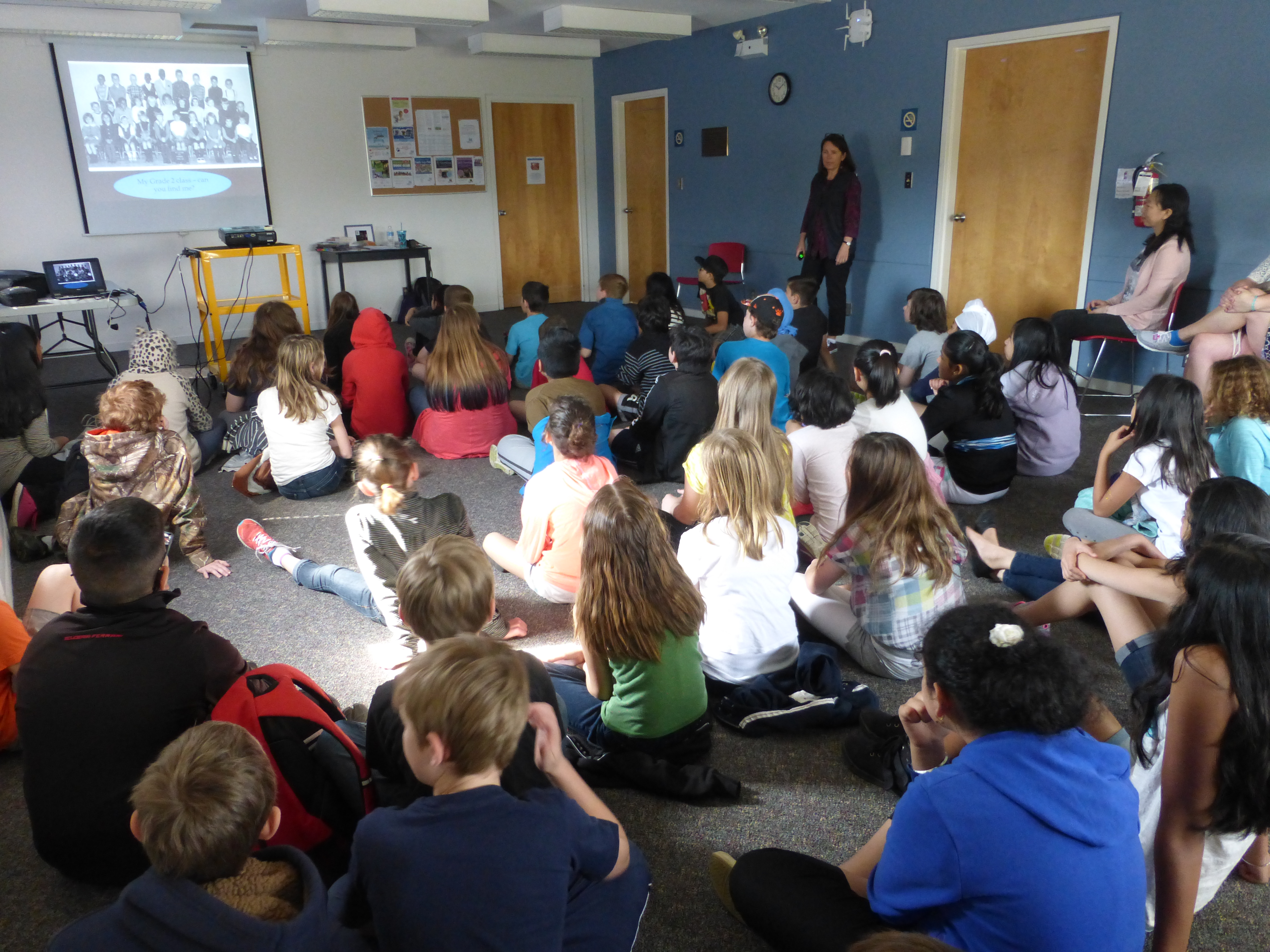 I met lots of enthusiastic and energetic readers/writers today – grades 5/6 students at the Cloverdale Branch and grades 2/3 students at the Newton Branch of the Surrey Libraries. Highlights included the girl who, in her sensory writing, described a cat’s tongue as sounding “slurpy,” the grade 5 girl who told me she regularly reads 600-page books in three days, the boy who showed me the comic character he created, the grade 2 student who described my sensory writing game as “charades with words,” and two of the friendliest librarians around – my hosts for the day, Lucy and Mehj – thank you so much! Thanks also to the parent who took some pictures for me, and to all the parents and teachers who did the 30-minute walk with the students from the schools to the libraries. Unfortunately, I don’t have the name of the actual schools, but I had so much fun talking about books and writing with all of you! In fact, I went half an hour overtime with the older group who were keen to share their writing, but wanted me to read it aloud for them… remember being 11?