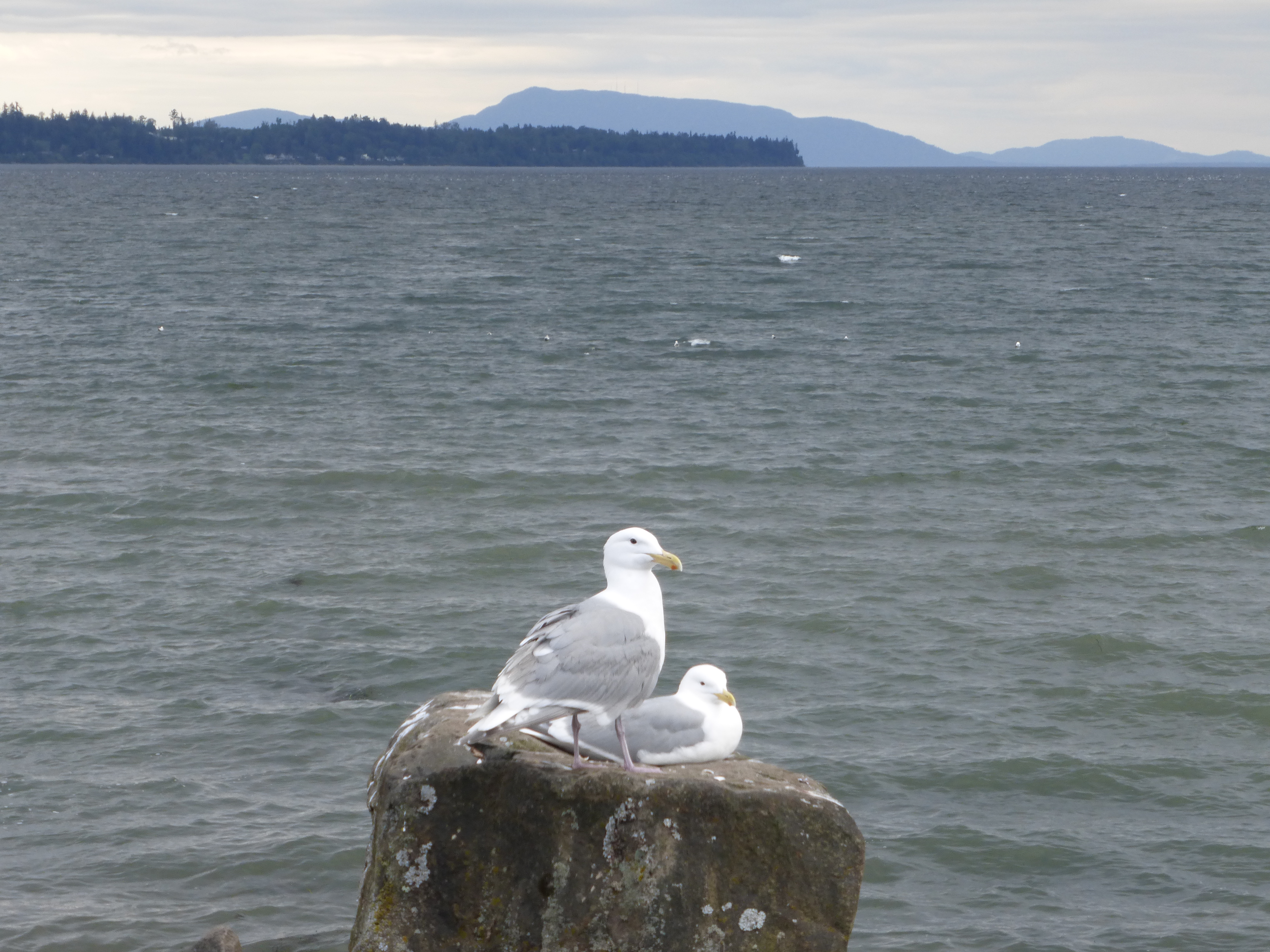 And finally, I took a drive out to White Rock for dinner and found these two plump gulls waiting for the rain. My big wish now is that tonight my brain will adjust for the four-hour time change and won’t think it’s time to wake up at 2:00 am like it did last night!