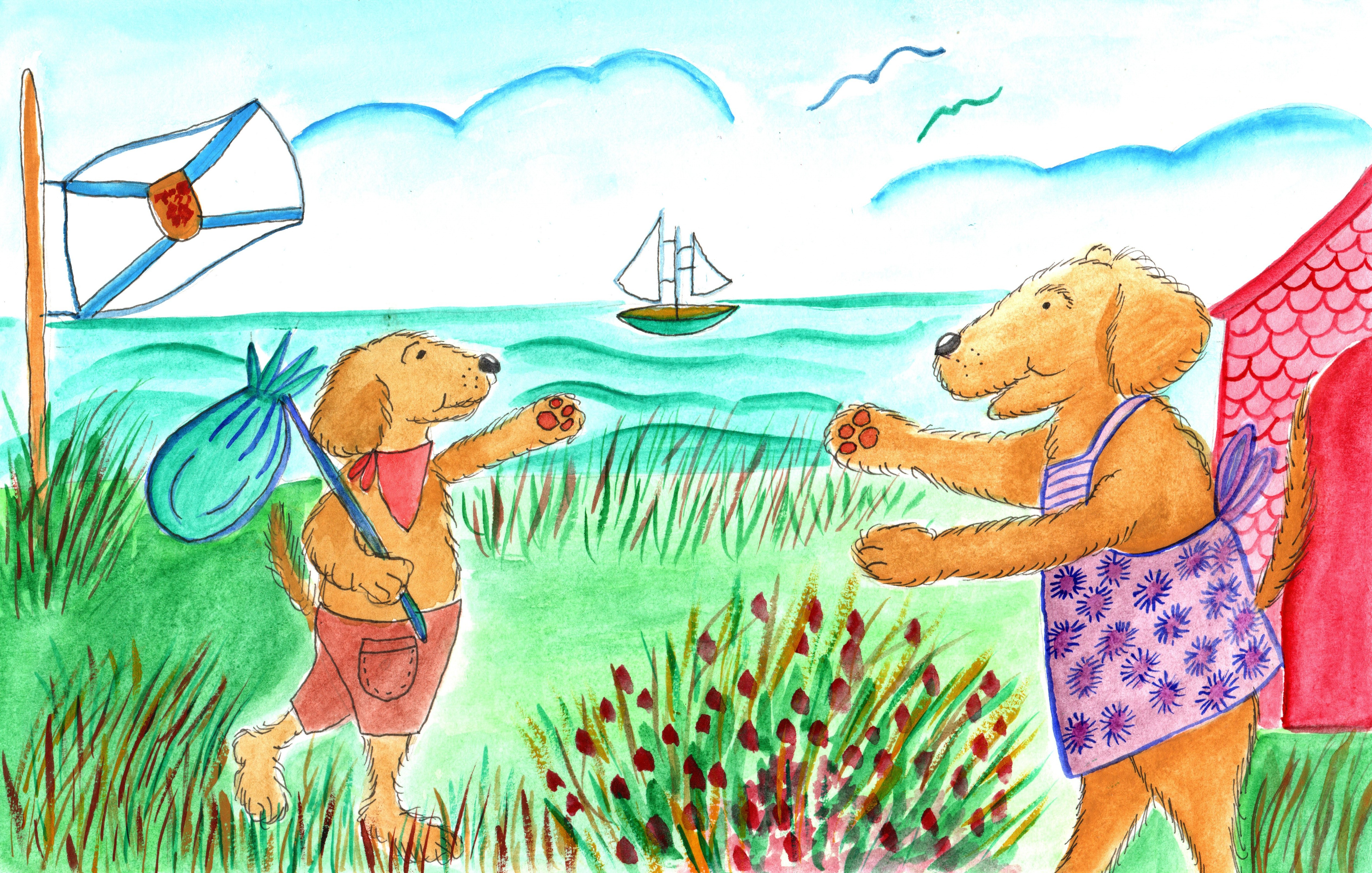 A couple of illustrations from my freshly-printed picture book, JESSIE and ME: HAT PEOPLE, created with the fine people of Camp Triumph on PEI:
