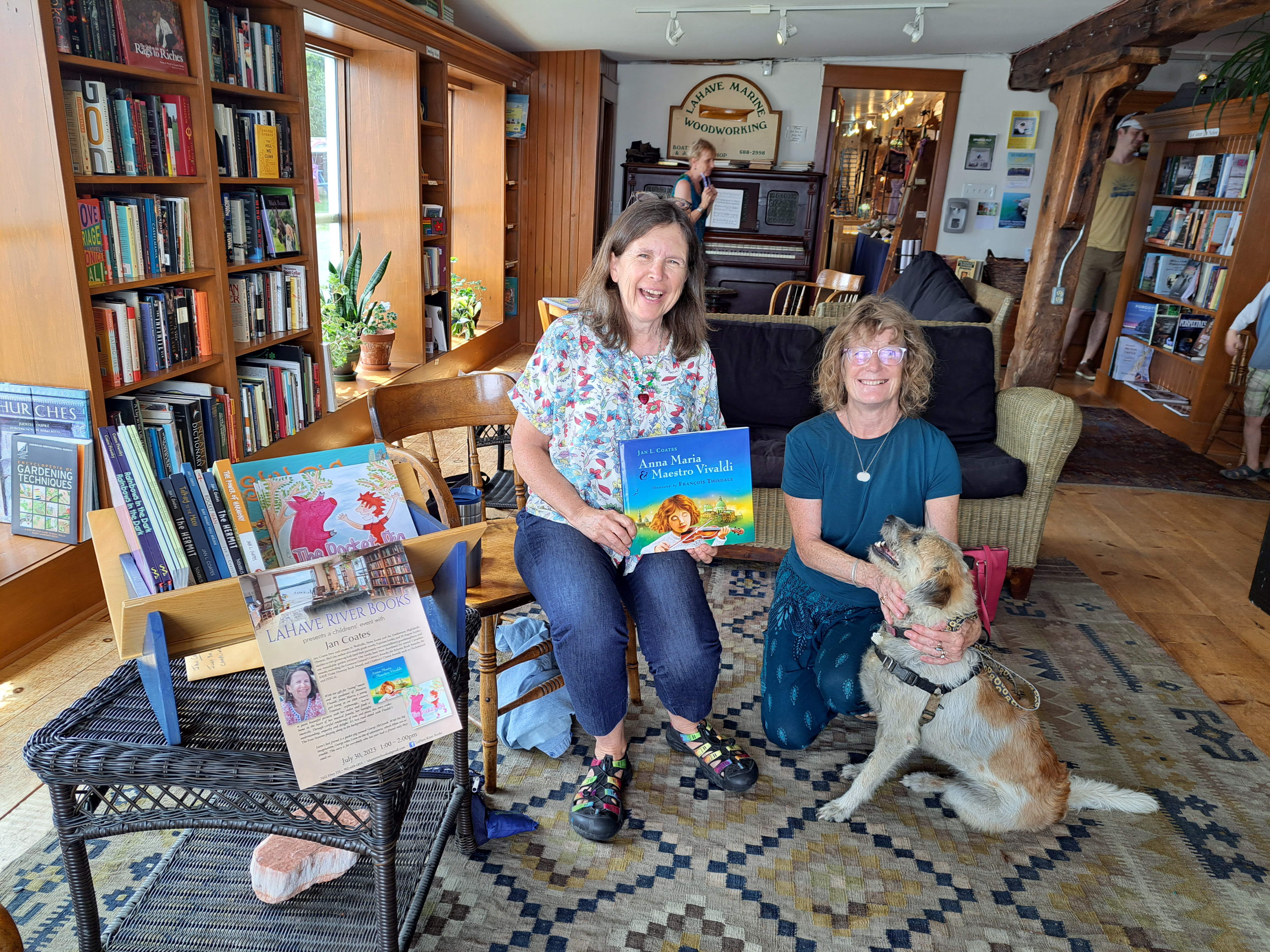 Sadly, the CEO of Fitzhenry, Sharon Fitzhenry recently passed away. She and her sister Holly Doll (who was nice enough to come to my book event at cozy bookshop, Lahave River Books, in late July, as pictured below) have been the faces of F&W for many years, and their dad started the publishing company back in 1966. A great loss to the CanLit community.