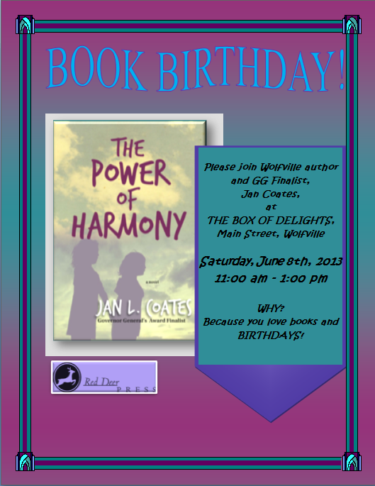 Despite this terror, I’m looking forward to my launches – in Wolfville on June 8th, and in Springhill (where the novel is set) on June 11th. Hope to see some of you there!